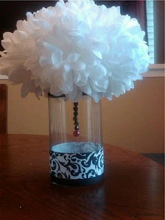 Para que un Centro de Mesa o Arreglo Floral quede bien, se necesita contar con el recipiente adecuado, y muchas veces esto es muy fácil de lograr, basta con colocarle una cinta como la de la imagen y listo.